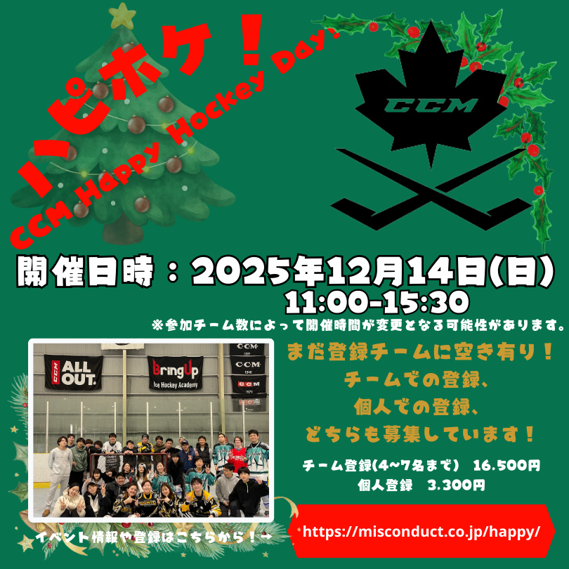 12月14日(日) 11:00-15:30 ハピホケ!-CCM Happy Hockey Day!-開催!!